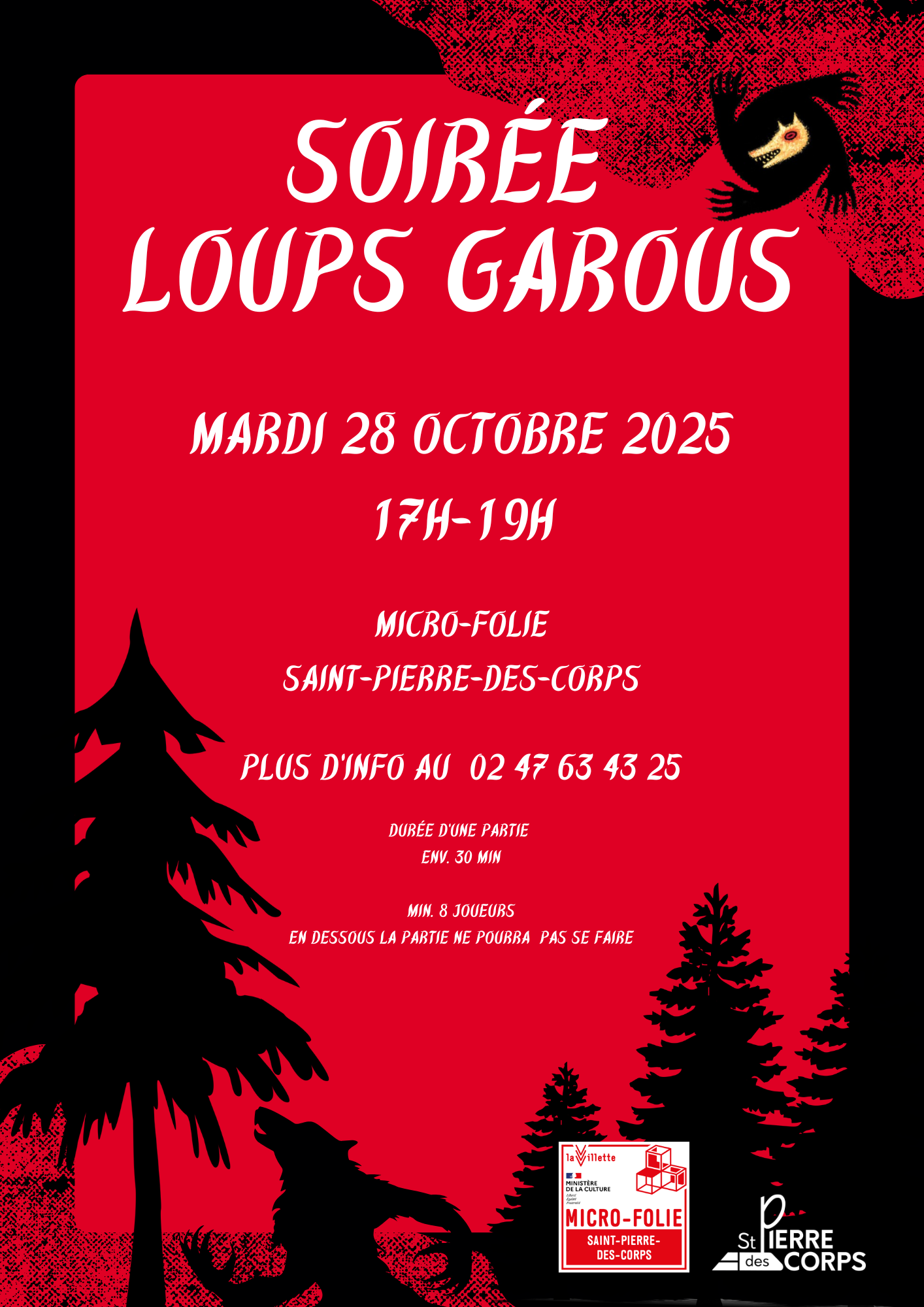 De 16h à 17h, initiation pour les débutants, sans inscription. De 17h à 19h, jeu du loup garou géant, gratuit sur inscription dans la limite des places disponibles.